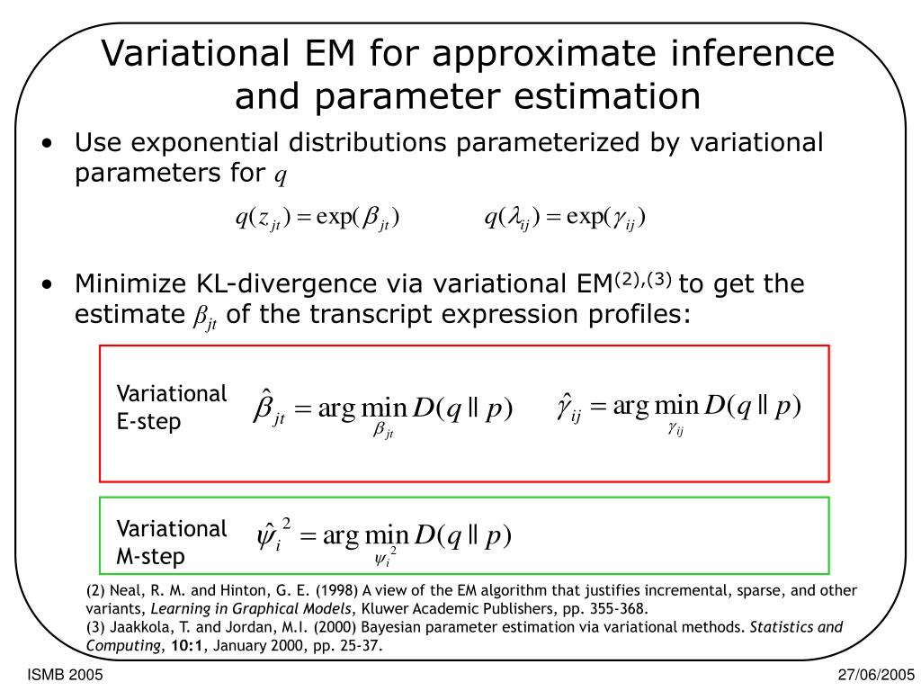 Variational Expectation-Maximization algorithm Variational E-step Variational M-step ISMB 2005