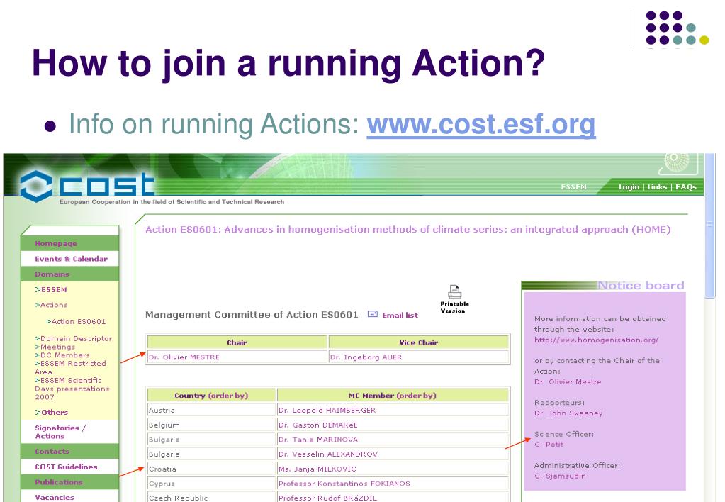 How to join a running Action? • Info on running Actions:www.cost.esf.org