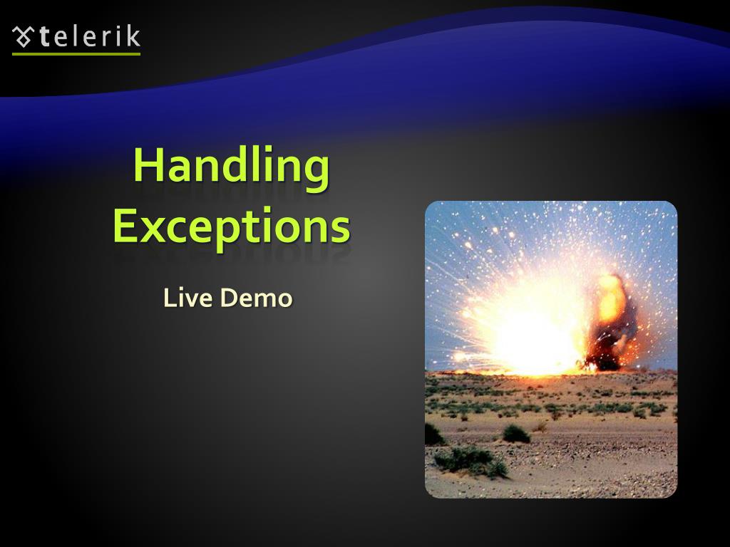 The exceptions in .NET Framework are classic implementation of the OOP exception model Deliver powerful mechanism for centralized handling of errors and unusual events Substitute procedure-oriented approach, in which each function returns error code Simplify code construction and maintenance Allow the problematic situations to be processed at multiple levels What are Exceptions?