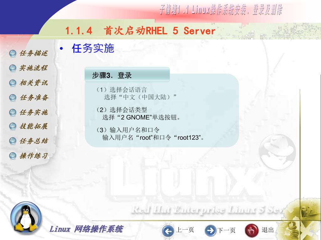 Linux操作系统应用 子情境1.1 Linux操作系统安装、登录及删除 教学单元1.1.4 首次启动RHEL 5 Server