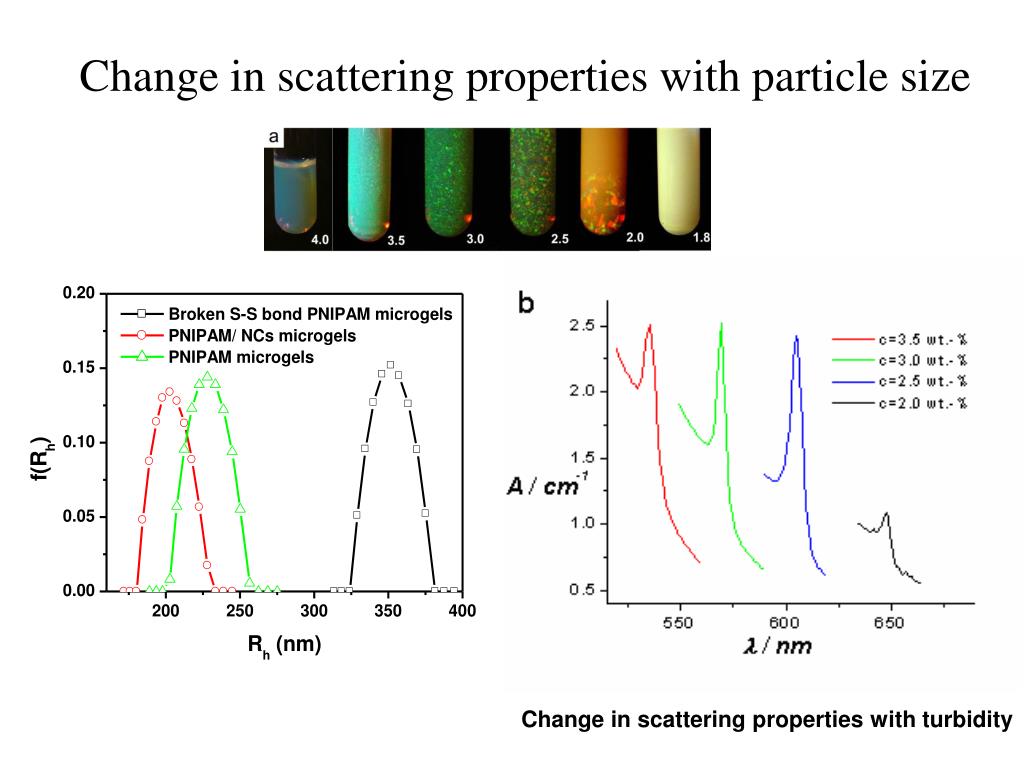Change in scattering properties with particle size Variation of Particle size with chemistry Change in scattering properties with turbidity
