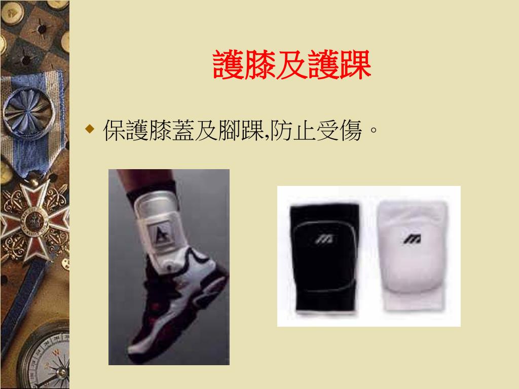 護膝及護踝 • 保護膝蓋及腳踝,防止受傷。