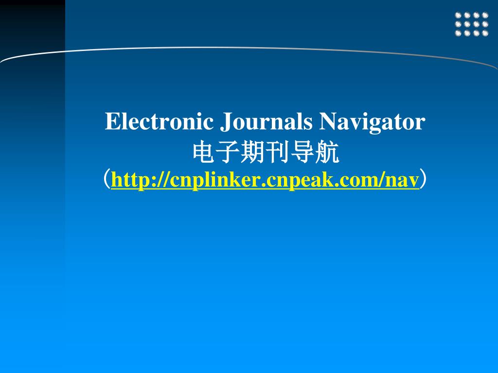 Electronic Journals Navigator电子期刊导航(http://cnplinker.cnpeak.com/nav)