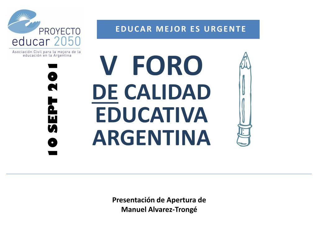Educar mejor es URGENTE • V FORO DE CALIDADEDUCATIVAARGENTINA 10 SEPT 2013 Presentación de Apertura de Manuel Alvarez-Trongé