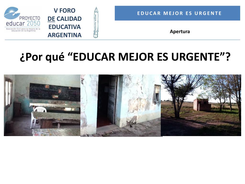 V FORO DE CALIDAD EDUCATIVA ARGENTINA Educar mejor es URGENTE Apertura ¿Por qué “EDUCAR MEJOR ES URGENTE”?