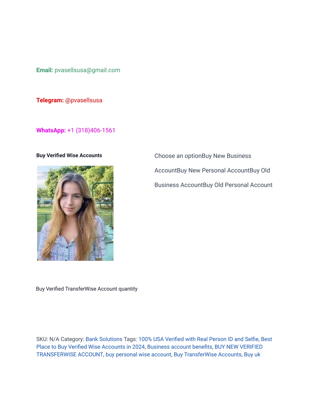 Email: pvasellsusa@gmail.com Telegram: @pvasellsusa WhatsApp: +1 (318)406-1561 Buy Verified Wise Accounts Choose an optionBuy New Business AccountBuy New Personal AccountBuy Old Business AccountBuy Old Personal Account Buy Verified TransferWise Account quantity Add to cart SKU: N/A Category: Bank Solutions Tags: 100% USA Verified with Real Person ID and Selfie, Best Place to Buy Verified Wise Accounts in 2024, Business account benefits, BUY NEW VERIFIED TRANSFERWISE ACCOUNT, buy personal wise account, Buy TransferWise Accounts, Buy uk
