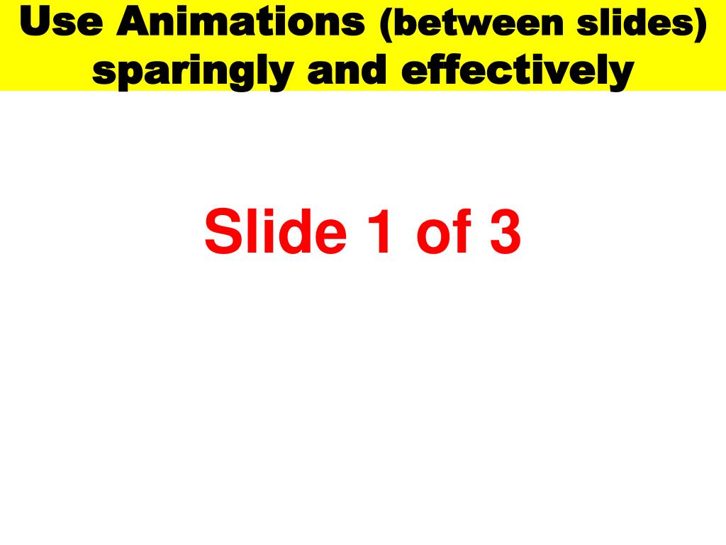 Use Animations (between slides) sparingly and effectively Slide 1 of 3