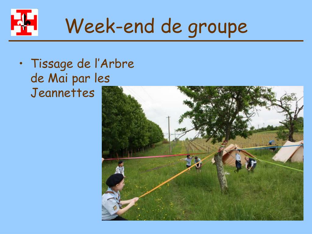Diaporama photos. Groupe Saint Jean-Marie Vianney MACON. Week-end de groupe Mai 2010 Astérix et ses amis. Week-end de groupe. Tissage de l’Arbre de Mai par les Jeannettes. Week-end de groupe. Arbre de Mai des Jeannettes. Week-end de groupe. Jeu du chat et de la souris. Week-end de groupe.