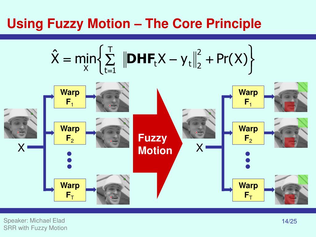 Motivation Low-quality video sequences are quite common: webcams, cellular phones, security cameras, … Super-Resolution could (in principle) reconstruct betteroptical resolution from these sequences, but … Yes, we can! In this talk we present a new Super-Resolution Reconstruction (SRR) algorithm that relies on fuzzy (probabilistic) motion estimation, and can work on arbitrary image sequences The implication: classical Super-resolution algorithms are limited to handle sequences with global motion This reconstruction requires highly accuratemotion estimation Can we bypass this limitation?
