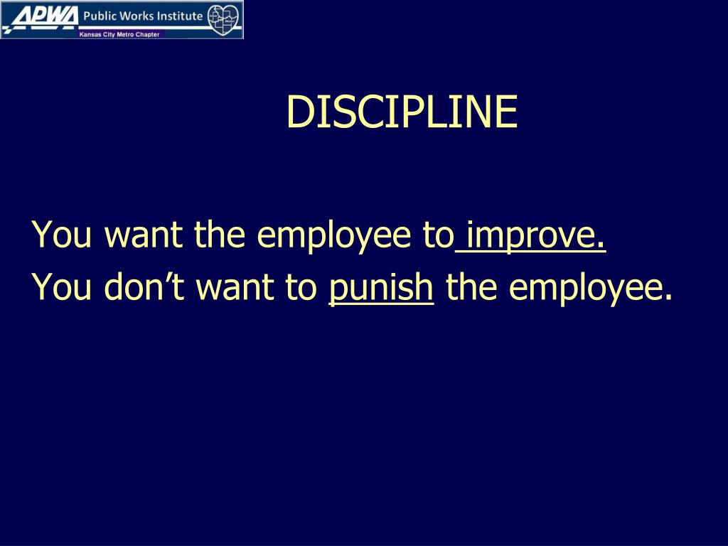 DISCIPLINE You want the employee to improve. You don’t want to punish the employee.