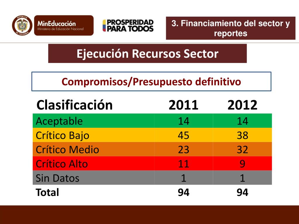 3. Financiamiento del sector y reportes Ejecución Recursos Sector Compromisos/Presupuesto definitivo
