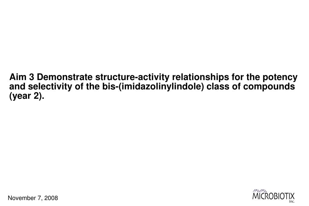 Aim 3 Demonstrate structure-activity relationships for the potency and selectivity of the bis-(imidazolinylindole) class of compounds (year 2).