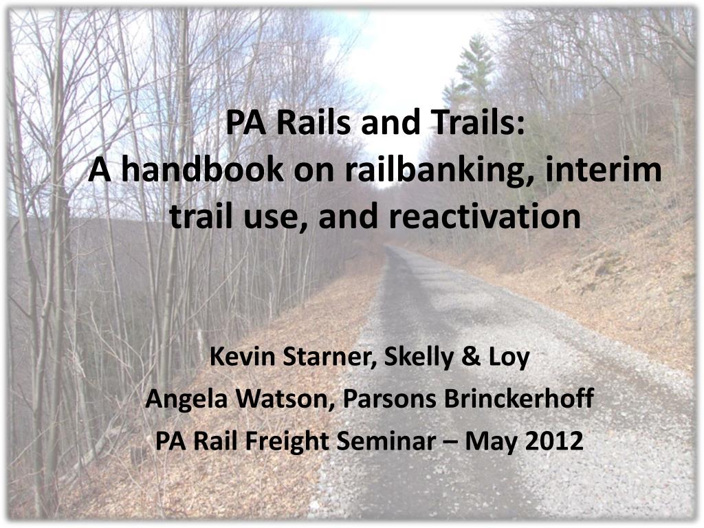 PA Rails and Trails:A handbook on railbanking, interim trail use, and reactivation Kevin Starner, Skelly & Loy Angela Watson, Parsons Brinckerhoff PA Rail Freight Seminar – May 2012