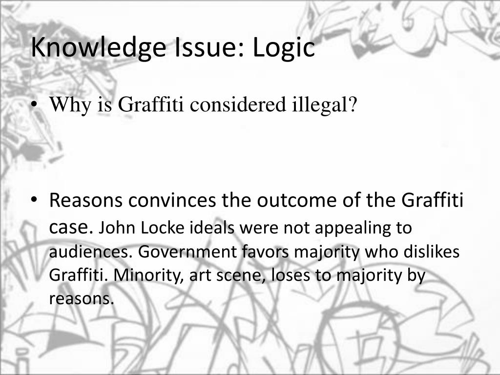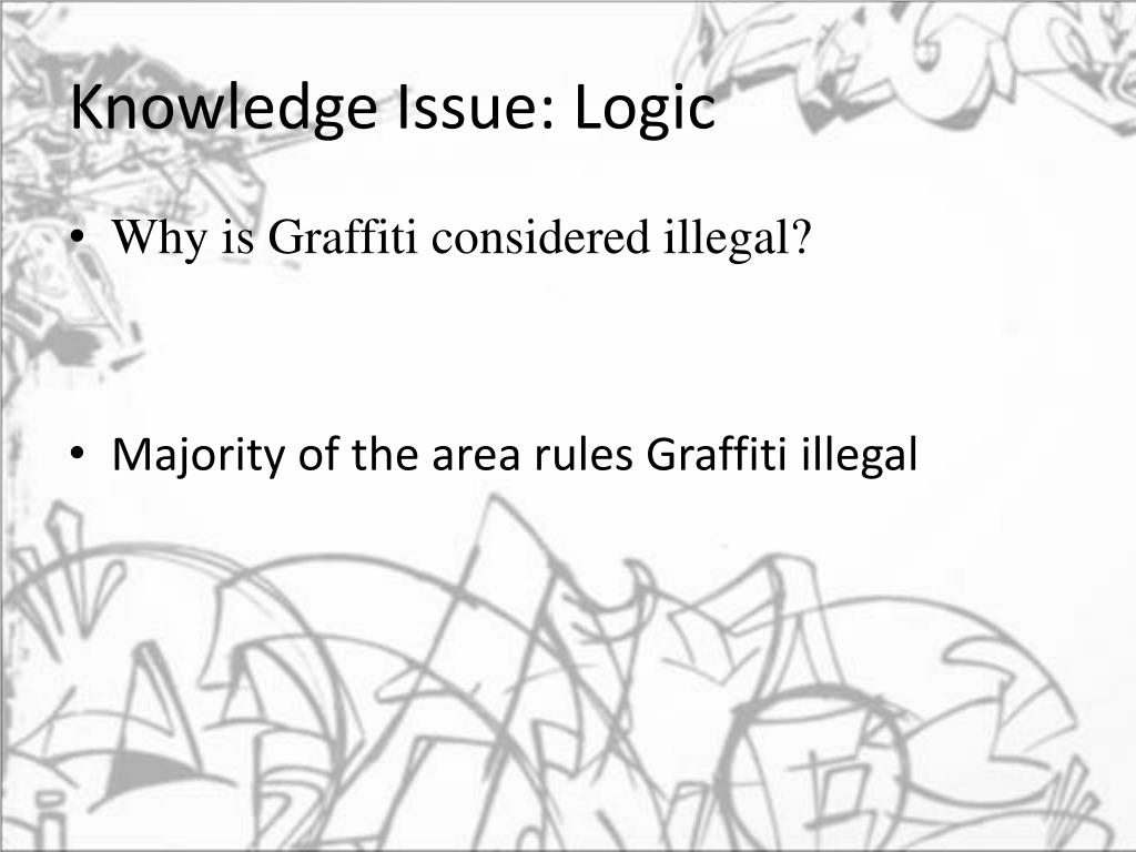 Knowledge Issue: Logic • Why is Graffiti considered illegal? • Majority of the area rules Graffiti illegal