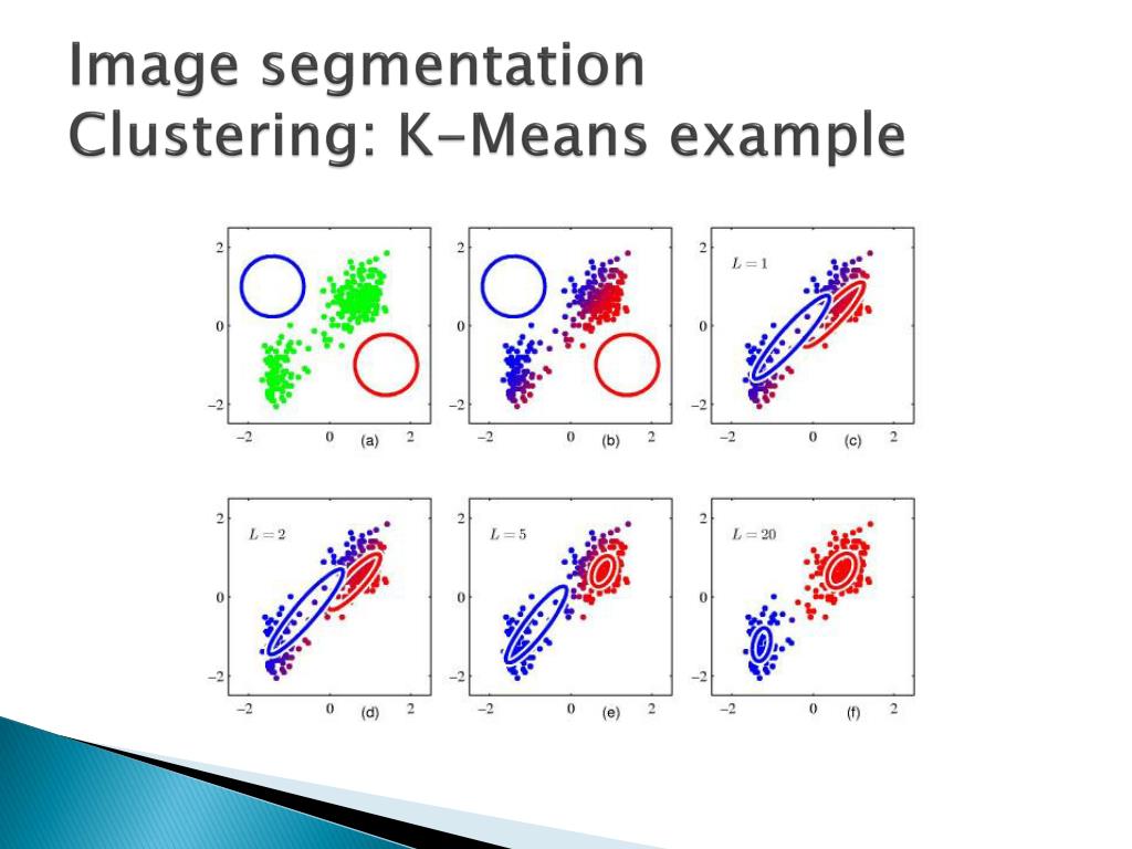 Image segmentationClustering: K-Means Euclidean/Mahalanobis distance comparison Euclidean distance Mahalanobis distance