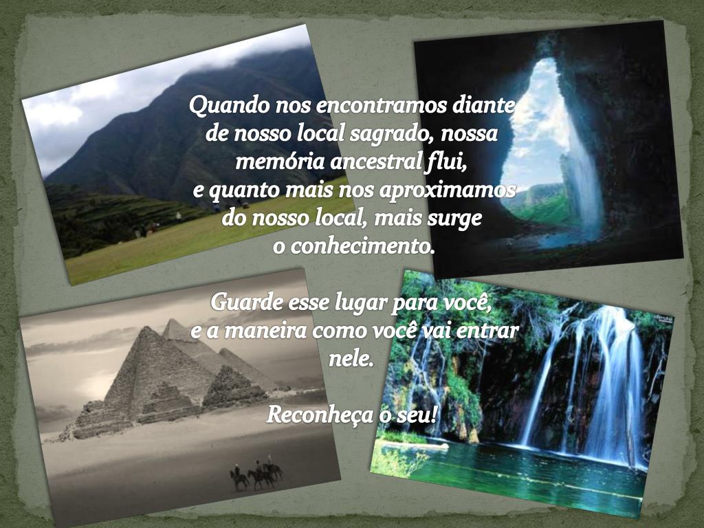 Quando nos encontramos diante de nosso local sagrado, nossa memória ancestral flui, e quanto mais nos aproximamos do nosso local, mais surge o conhecimento. Guarde esse lugar para você, e a maneira como você vai entrar nele. Reconheça o seu!