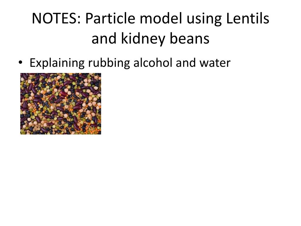 NOTES: Particle model using Lentils and kidney beans • Explaining rubbing alcohol and water