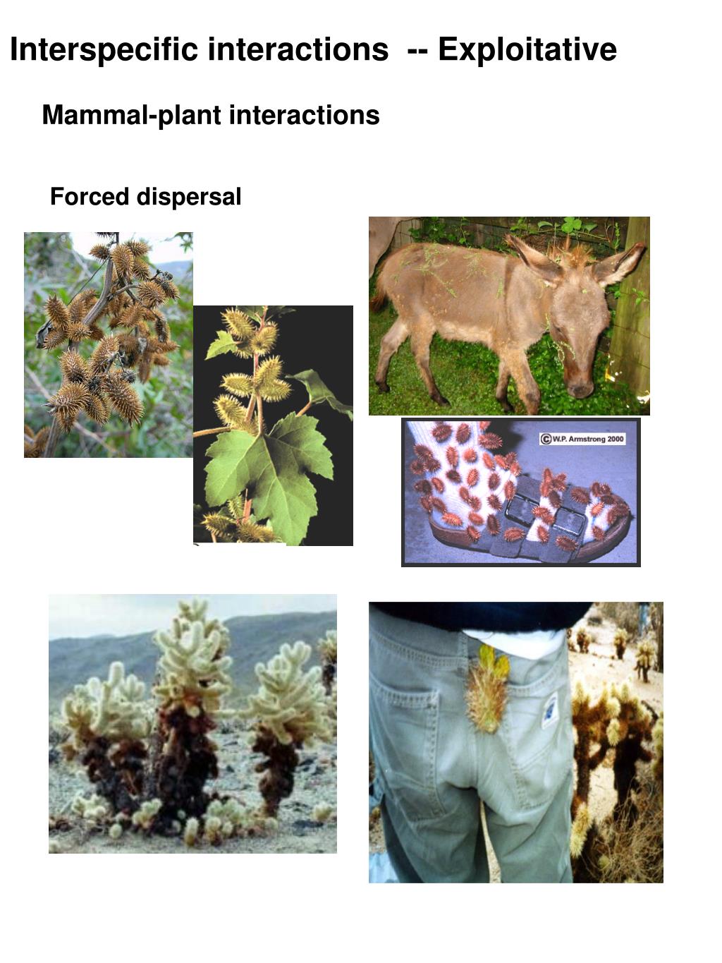Herbivory – evolution of grazing Plant chemical defenses Mechanical defense of seeds Interspecific interactions -- Exploitative Mammal-plant interactions