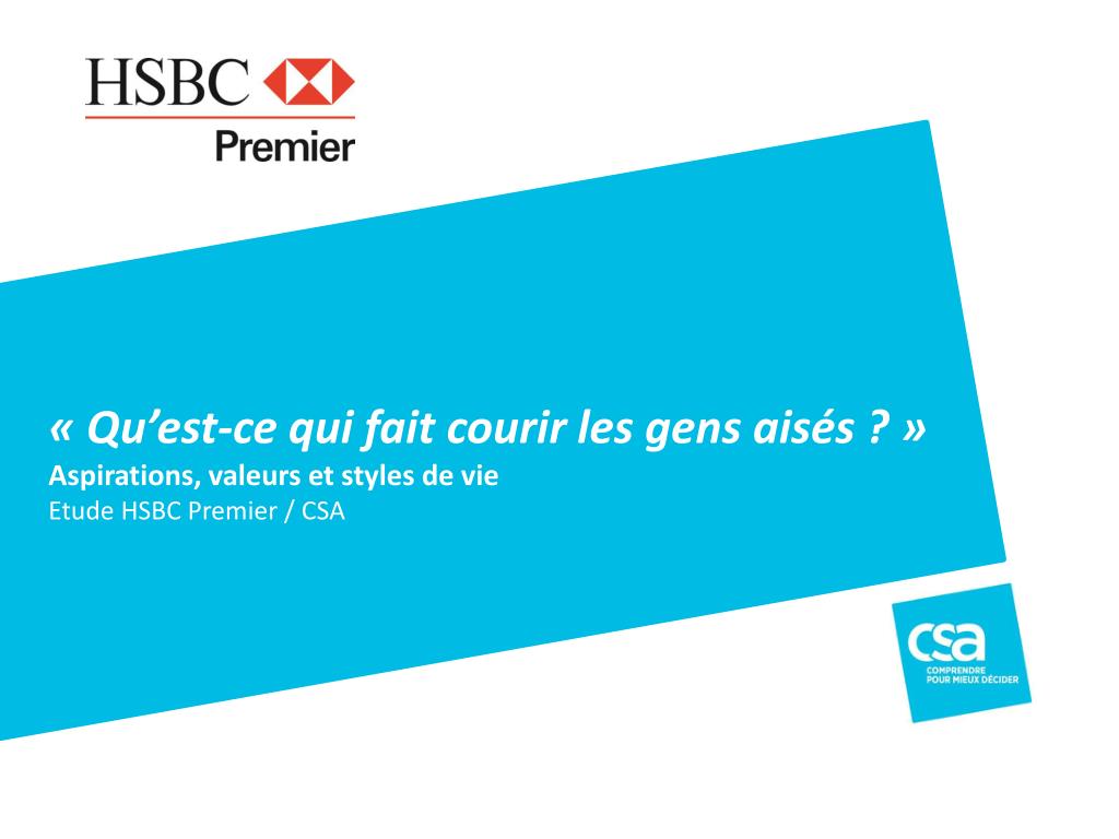 « Qu’est-ce qui fait courir les gens aisés ? » • Aspirations, valeurs et styles de vie • Etude HSBC Premier / CSA