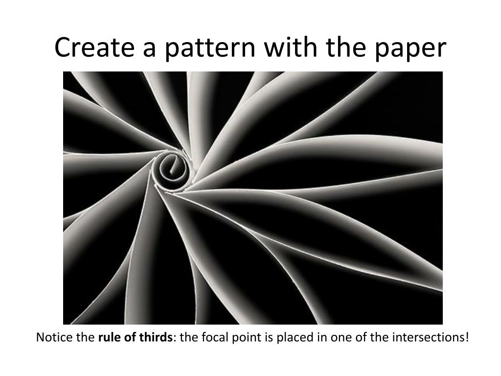Create a pattern with the paper Notice the rule of thirds: the focal point is placed in one of the intersections!