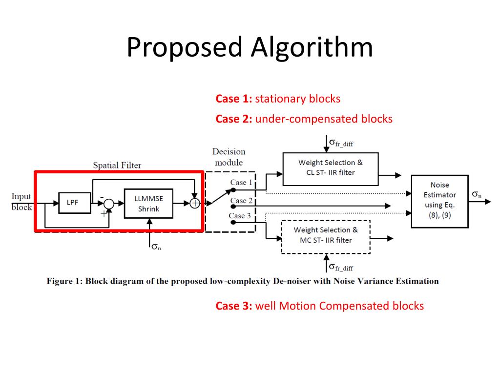 Proposed Algorithm Case 1: stationary blocks Case 2: under-compensated blocks Case 3: well Motion Compensated blocks