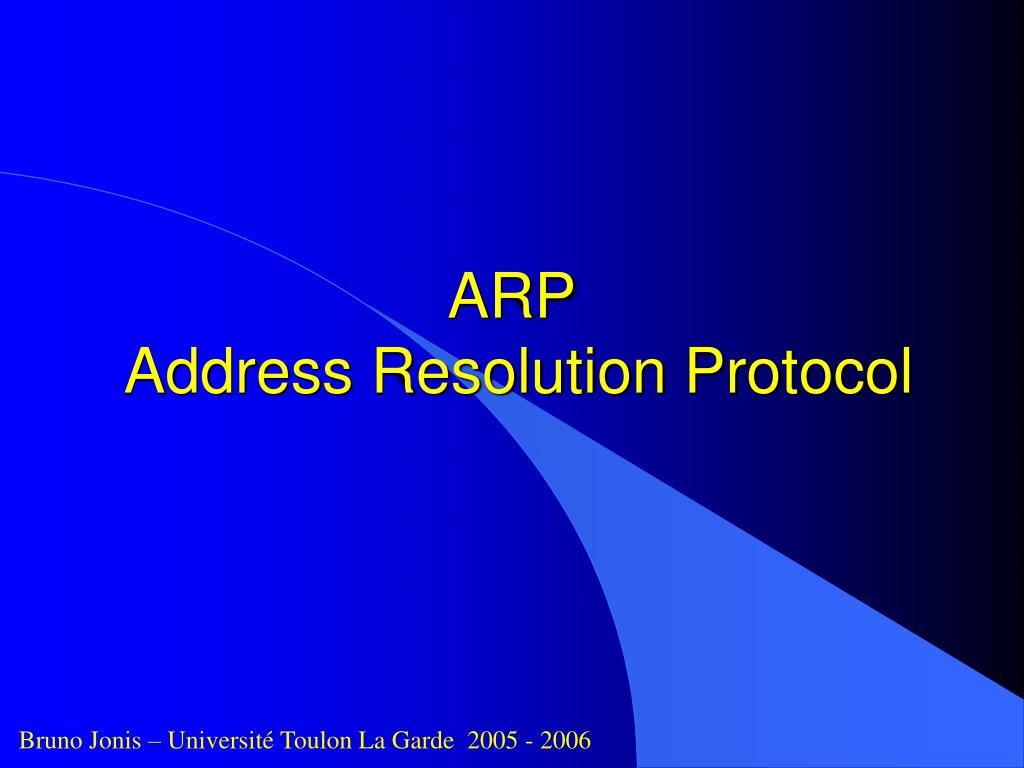 ARP Address Resolution Protocol Bruno Jonis – Université Toulon La Garde 2005 - 2006