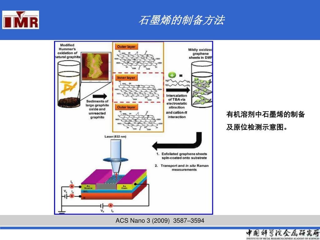 石墨烯的制备方法 有机溶剂中石墨烯的制备及原位检测示意图。 • ACS Nano 3 (2009) 3587–3594