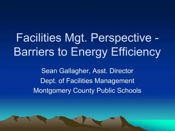 1. Facilities Mgt. Perspective -Barriers to Energy Efficiency Sean Gallagher, Asst. Director