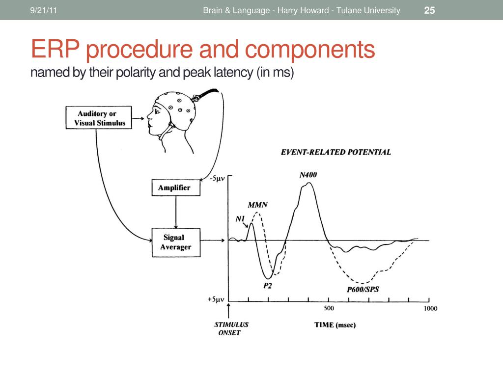 Brain & Language - Harry Howard - Tulane University ERP procedure and componentsnamed by their polarity and peak latency (in ms)