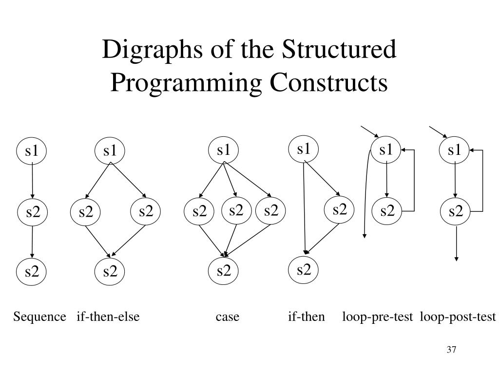 Digraphs of the Structured Programming Constructs s1 s1 s1 s1 s1 s1 s2 s2 s2 s2 s2 s2 s2 s2 s2 s2 s2 s2 s2 Sequence if-then-else case if-then loop-pre-test loop-post-test