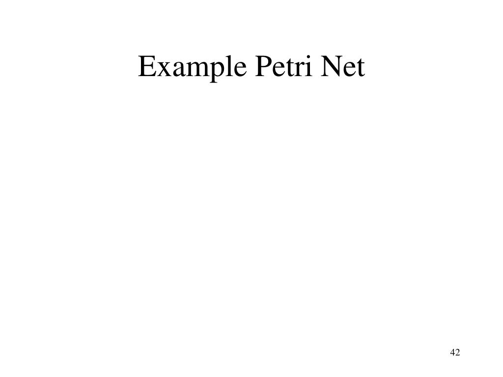 Petri-Nets • A Petri-Net is a bipartite graph (P, T, In, Out), in which P, T are disjoint sets of nodes and In and Out are sets of edges, where In is a subset of P X T, and out is a subset of T X P • A marked Petri-Net is a 5-tuple (P, T, In, Out, M) in which (P, T, In, Out) is a Petri-Net and M is a set of mappings of places to positive integers (number of tokens in a Place) • A transition in a Petri-Net is enabled when there is at least one token in each input place • When an enabled transition fires one token is removed from each of its input places and is added in each of the output places