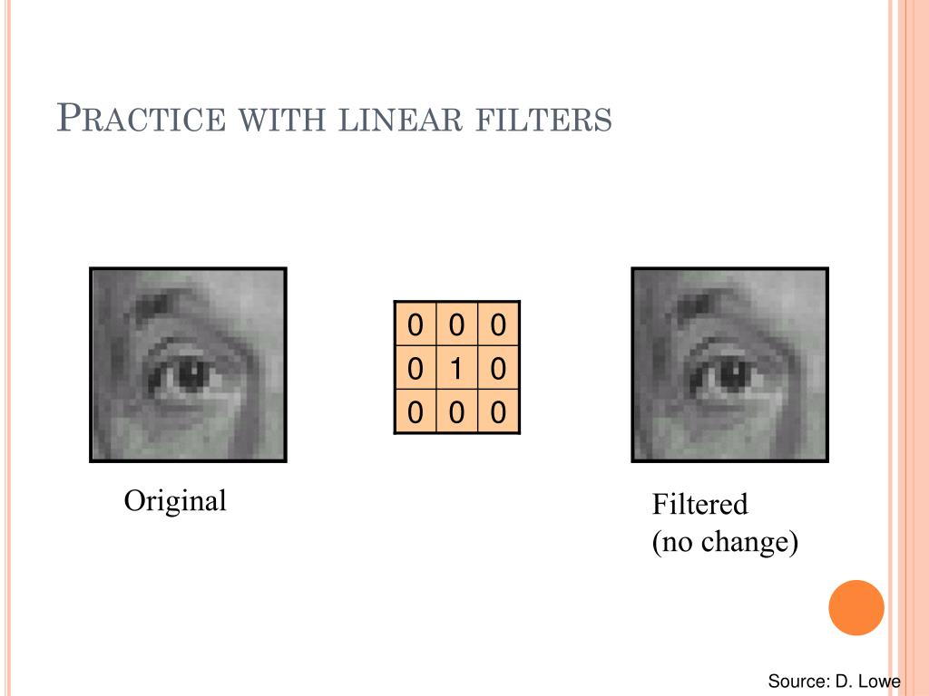 0 0 0 0 1 0 0 0 0 Practice with linear filters ? Original Source: D. Lowe
