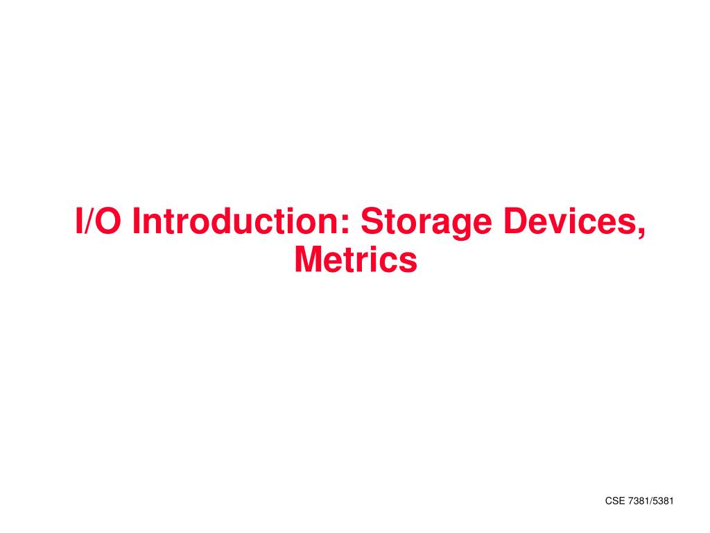 I/O Introduction: Storage Devices, Metrics. Motivation: Who Cares About I/O?. CPU Performance: 60% per year I/O system performance limited by mechanical delays (disk I/O) < 10% per year (IO per sec or MB per sec) Amdahl's Law: system speed-up limited by the slowest part!