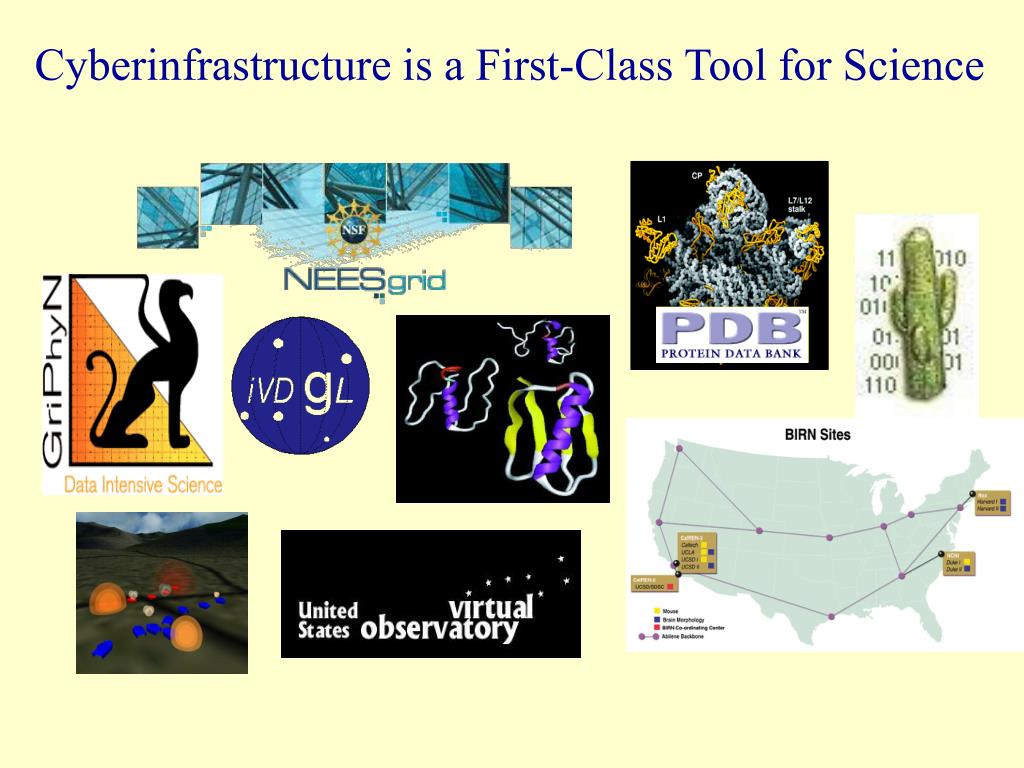 NSF Atkins Report “A new age has dawned in scientific and engineering research, pushed by continuing progress in computing, information, and communications technology and pulled by the expanding complexity, scope, and scale of today’s challenges. The capacity of this technology has crossed thresholds that now make possible a comprehensive “cyberinfrastructure” on which to build new types of scientific and engineering knowledge environments and organizations and to pursue research in new ways and with increased efficacy.”