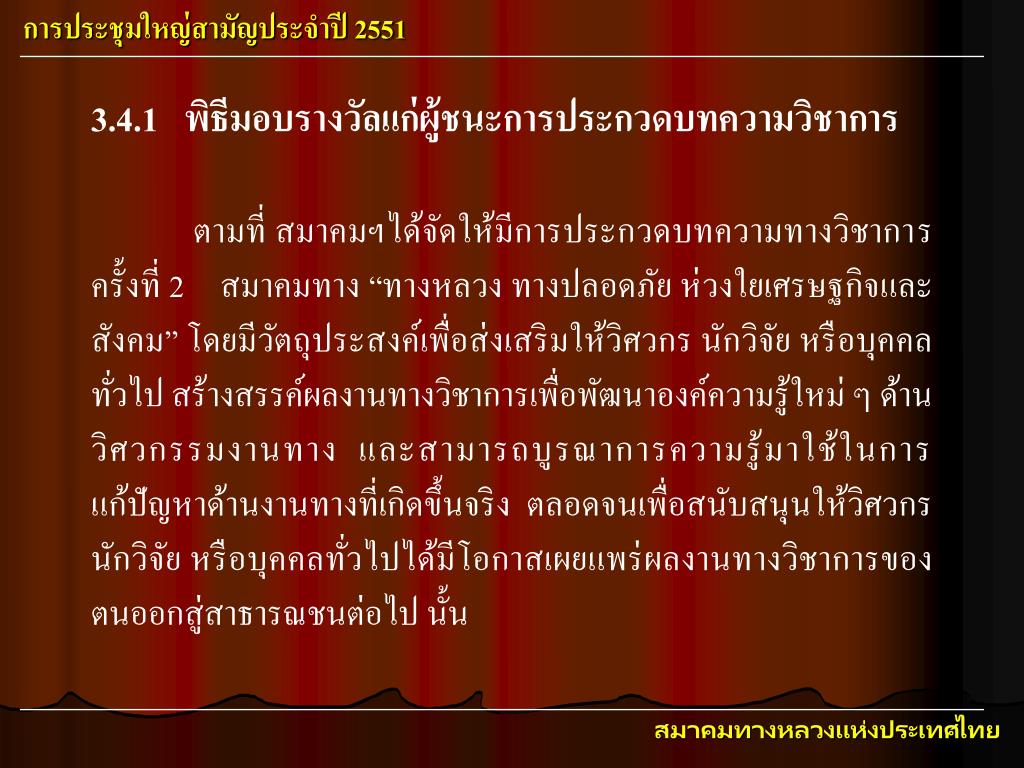 การประชุมใหญ่สามัญประจำปี2551การประชุมใหญ่สามัญประจำปี2551 3.4 พิธีมอบรางวัลประกวดบทความ และทุนการศึกษา สมาคมทางหลวงแห่งประเทศไทย