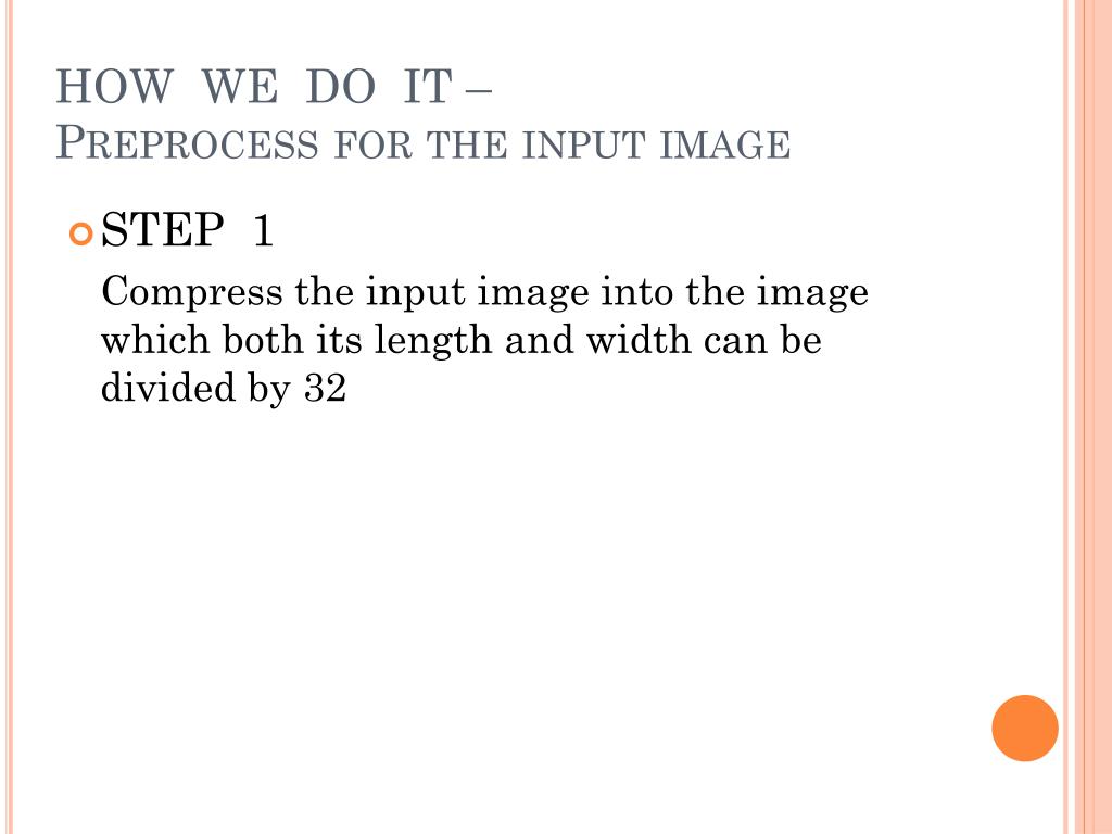 HOW WEDO IT – Preprocess for the input image • STEP 1 Compress the input image into the image which both its length and width can be divided by 32