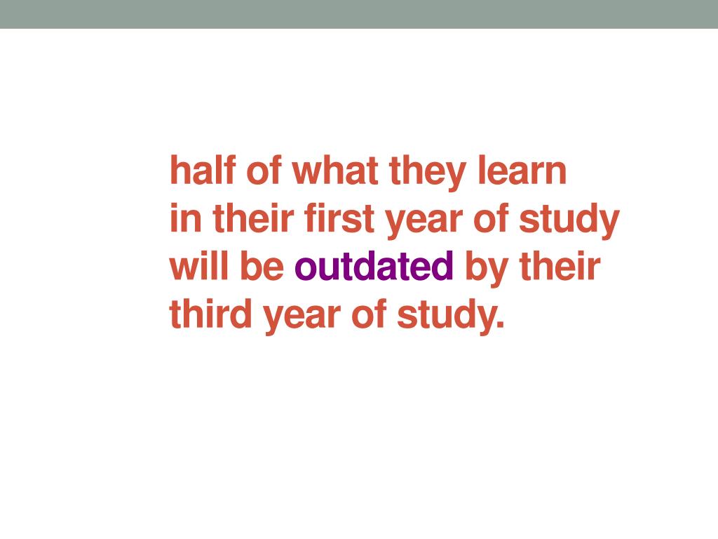 half of what they learn in their first year of study will be outdated by their third year of study.