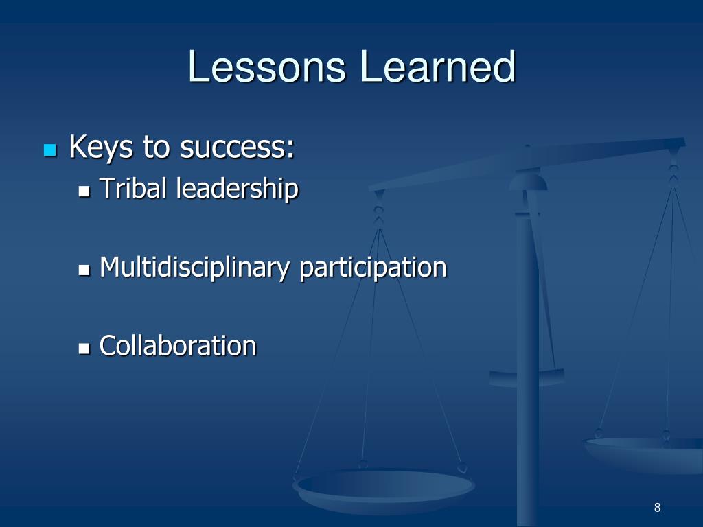 Lessons Learned • Keys to success: • Tribal leadership • Multidisciplinary participation • Collaboration