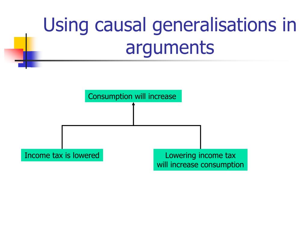 Using causal generalisations in arguments Consumption will increase Income tax is lowered