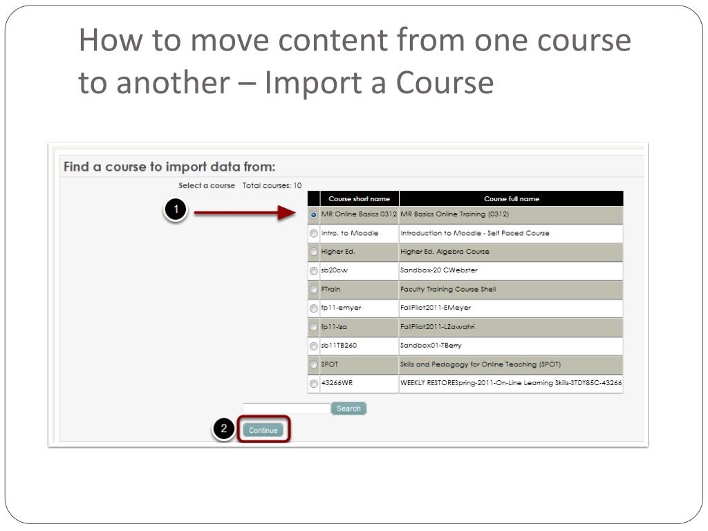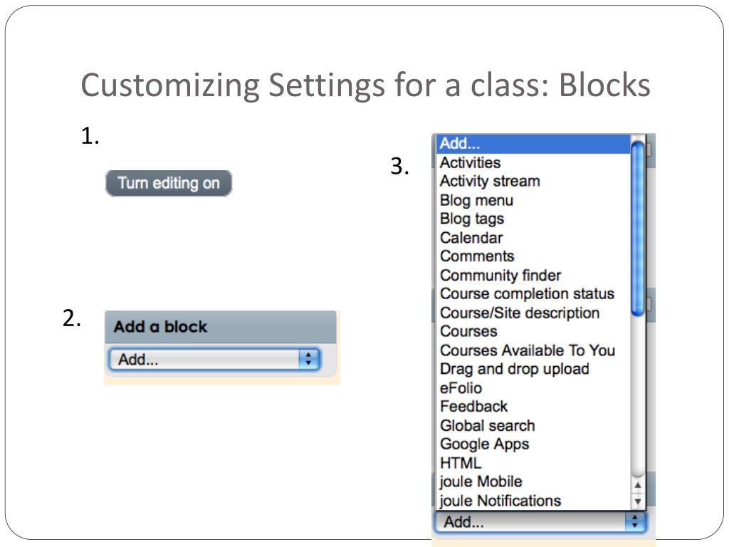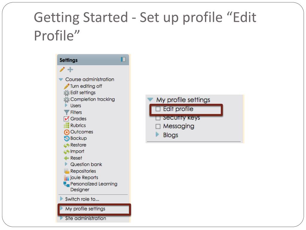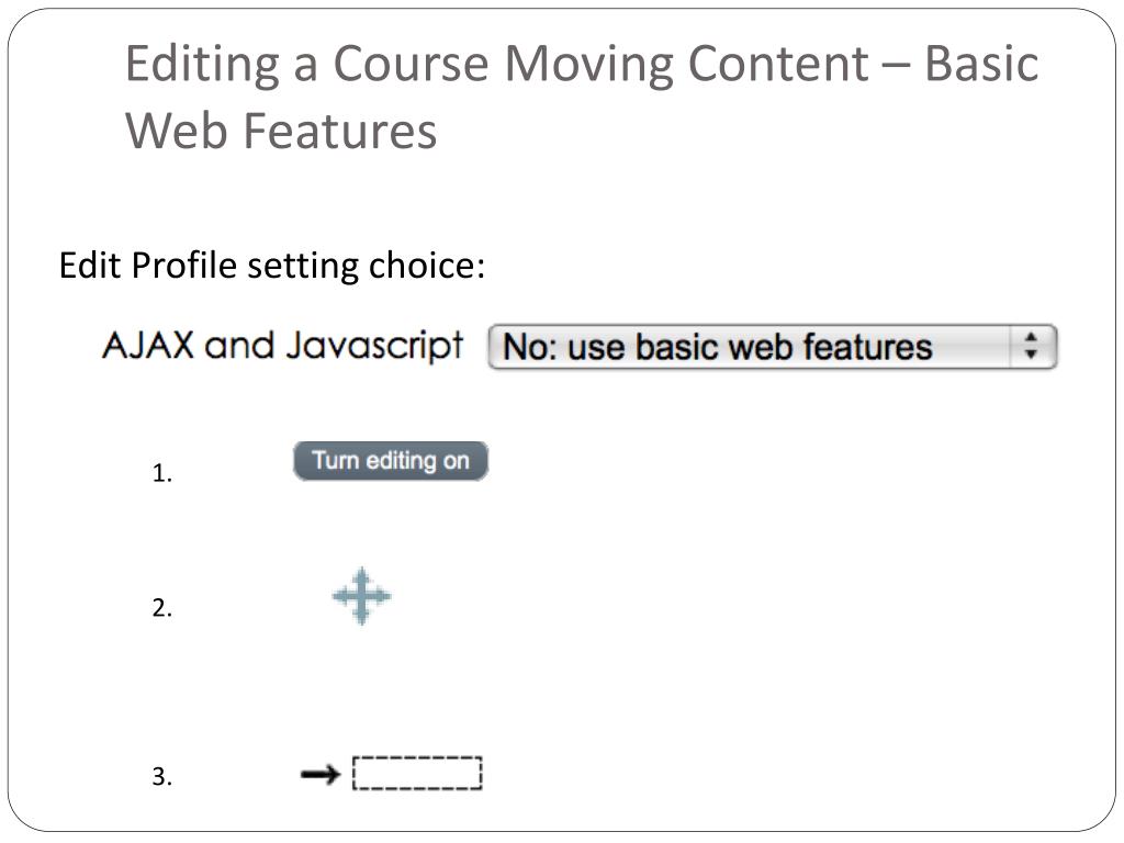 Editing a Course Moving Content – Basic Web Features Edit Profile setting choice: 1. 2. 3.