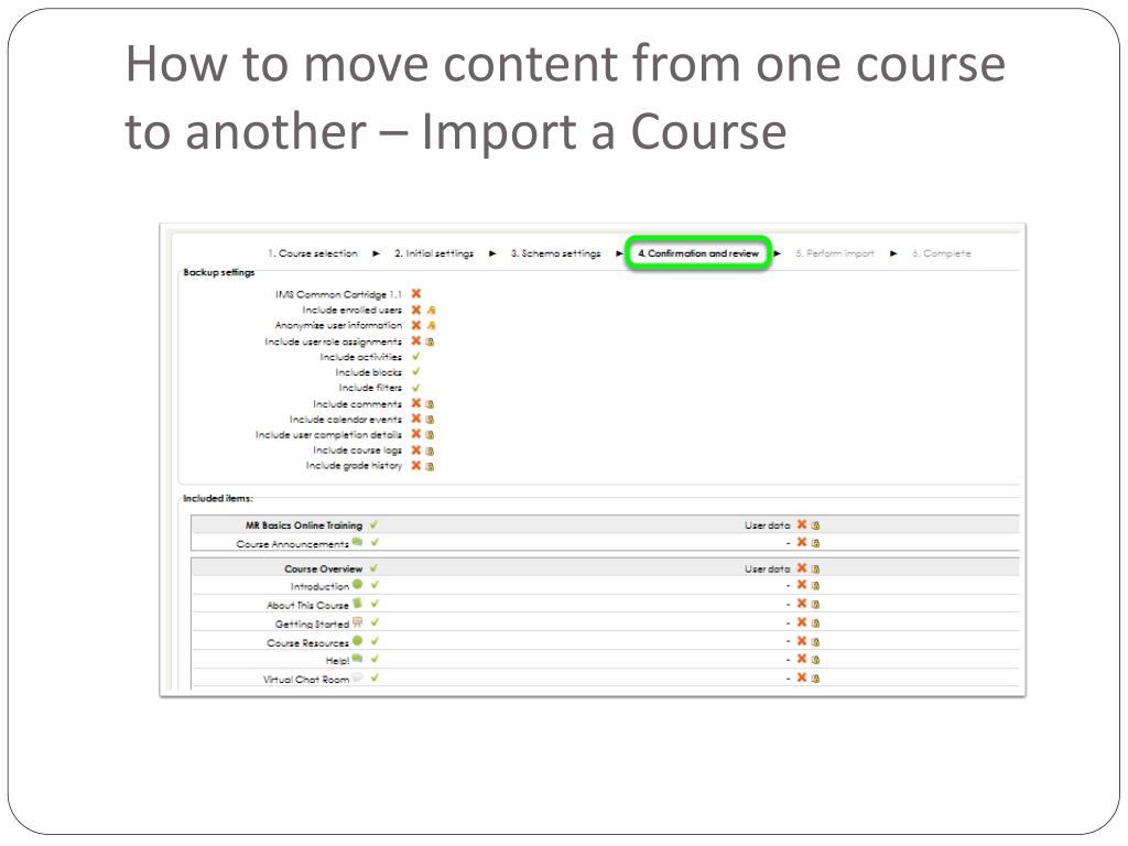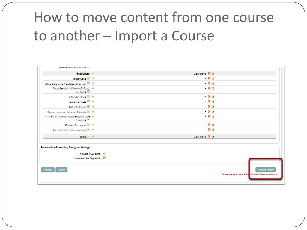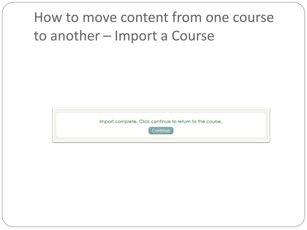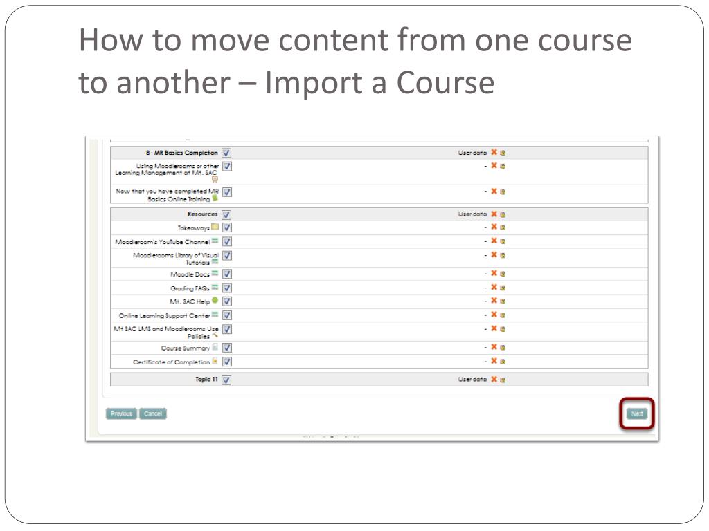 Editing a Course Moving Content – Advanced Web Features Edit Profile setting choice: 1. 2. 3. Drag item to new location. A faint grey line will appear at location point.