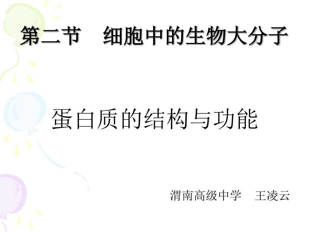 第二节 细胞中的生物大分子 蛋白质的结构与功能 渭南高级中学 王凌云