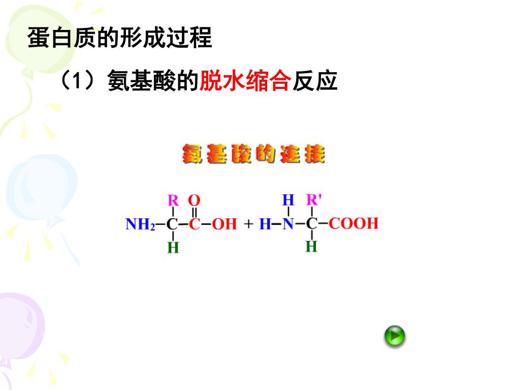 蛋白质的形成过程 (1)氨基酸的脱水缩合反应