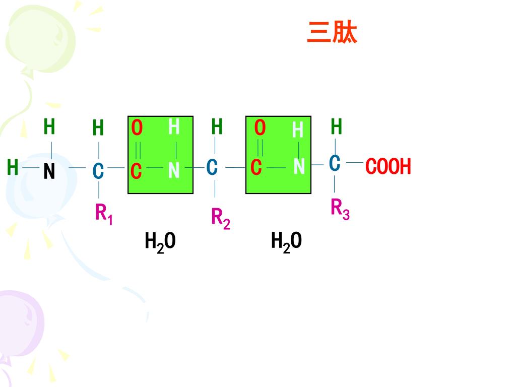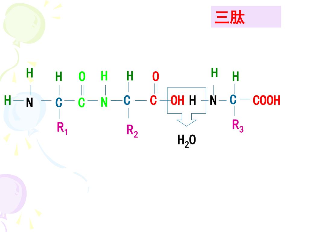 H H C N COOH R3 三肽 H H H O O H N N H C C C C R1 R2 H2O H2O