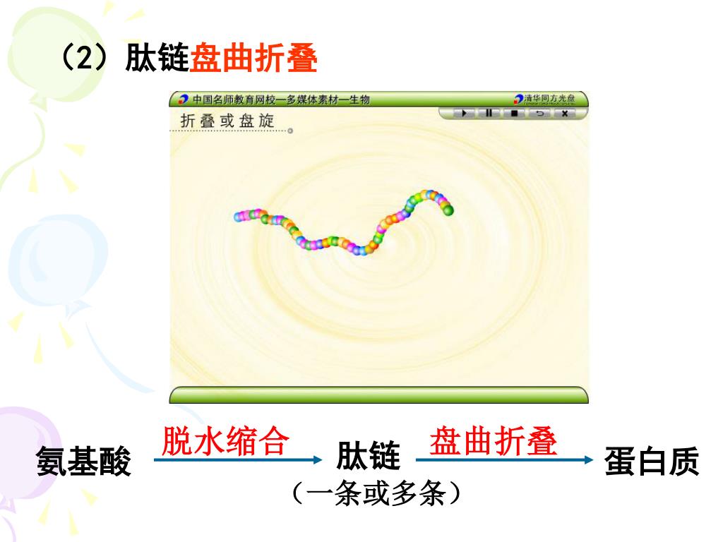 脱水缩合 盘曲折叠 肽链 (一条或多条) (2)肽链盘曲折叠 氨基酸 蛋白质