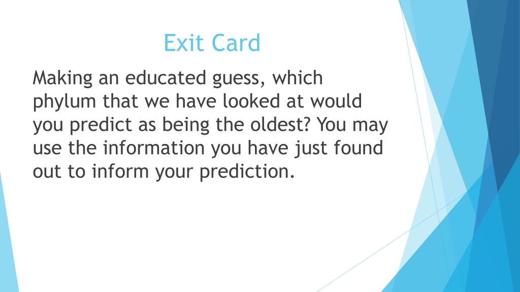 Exit Card Making an educated guess, which phylum that we have looked at would you predict as being the oldest? You may use the information you have just found out to inform your prediction.