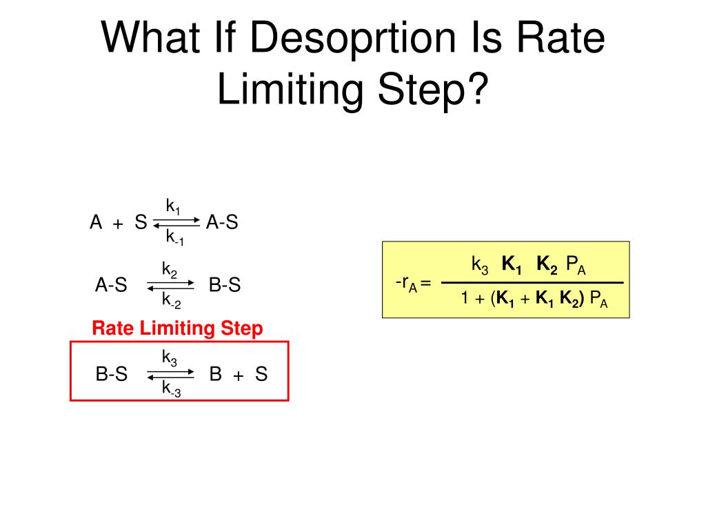 What If Desoprtion Is Rate Limiting Step? k1 A + S A-S k-1 k3 K1 K2 PA k2 -rA = A-S B-S 1 + (K1 + K1K2) PA k-2 Rate Limiting Step k3 B-S B + S k-3