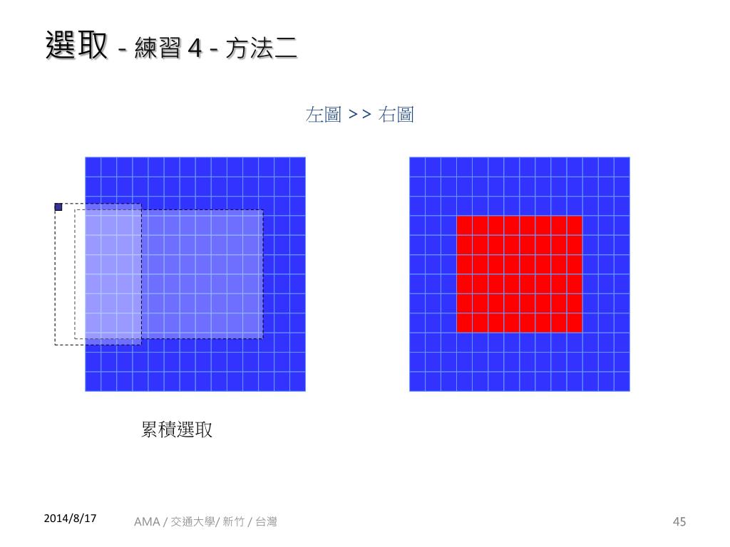 選取 - 練習 4 - 方法一 左圖 >> 右圖 方法一 填滿藍色 AMA / 交通大學/ 新竹 / 台灣