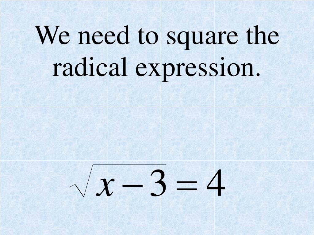 We need to square the radical expression.