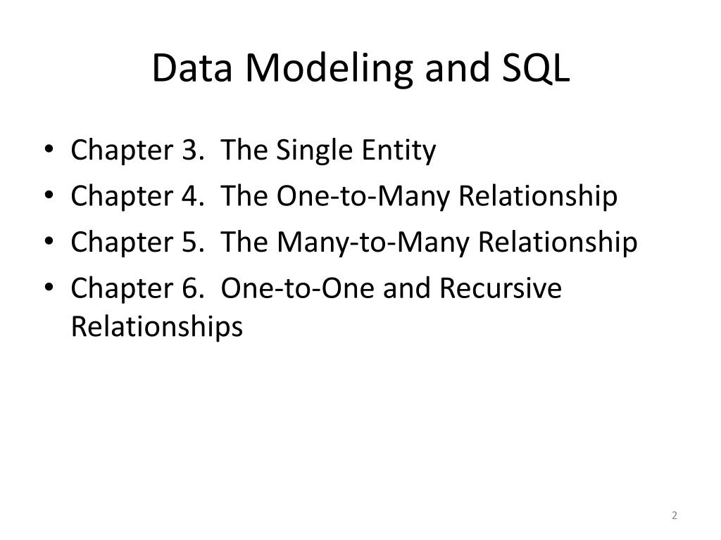 Data Modeling and SQL • Chapter 3. The Single Entity • Chapter 4. The One-to-Many Relationship • Chapter 5. The Many-to-Many Relationship • Chapter 6. One-to-One and Recursive Relationships